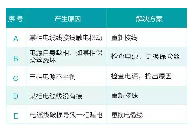 1、采用萬能表測量三根電源線的電壓,是否一相沒壓降;
