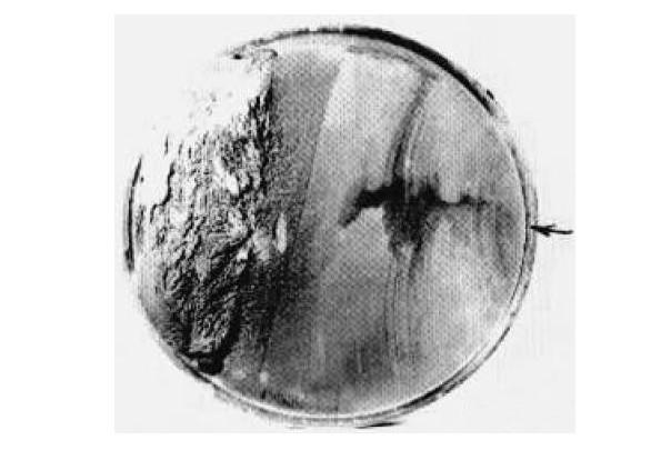軸斷裂面處于軸上軸承安裝處的過渡圓角區域(軸承安裝根部)。如果斷口表面齊整并與軸向垂直,無縮頸和塑性變形痕徑。斷口疲勞條帶明顯,從外圓向中心延伸,最終瞬斷區面積小于軸截面積的 15%。