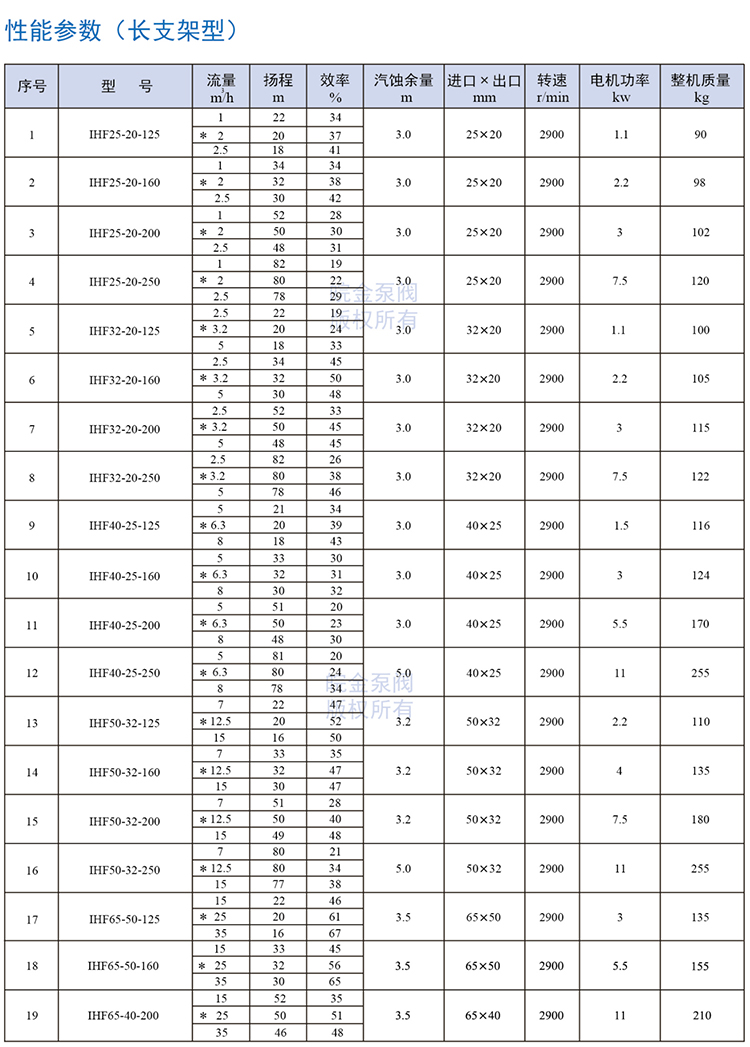 氟塑料離心泵又稱其為塑料離心泵、襯氟離心泵、耐腐蝕離心泵,IHF-J氟塑料離心泵長支架型和短支架型。氟塑料離心泵另有:IHF-D短支架型、FSB-L長支架型、FSB-D短支架型、GDF立式管道離心泵。