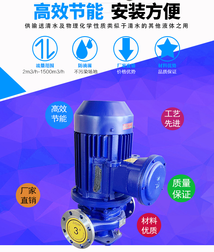 WJLG管道泵為立式結(jié)構(gòu),進(jìn)出口口徑相同,且位于同一中心線上,可象閥門一樣安裝在管路之中,外形緊湊美觀,占地面積小,建筑投入低,如加上防護(hù)罩則可置于戶外使用。葉輪直接安裝在電機(jī)的加長軸上,軸向尺寸短、泵與電機(jī)軸承配置合理,能有效地平衡泵運(yùn)轉(zhuǎn)產(chǎn)生的徑向和軸向負(fù)荷,從而保證了泵的運(yùn)行平穩(wěn),振動噪音很低。安裝檢修方便面,無需拆動管路系統(tǒng),只要卸下泵聯(lián)體座螺母即可抽出全部轉(zhuǎn)子部件。可根據(jù)管路布置的要求采用泵的豎式和橫式安裝。ISG管道泵分基本型、分流型、切割型,材質(zhì)可選:鑄鐵、201、304、316L,等多種規(guī)格。
