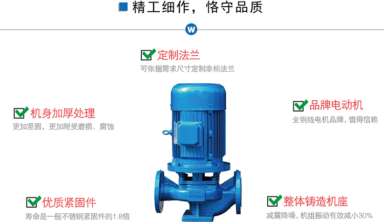 1、泵為立式結(jié)構(gòu),進(jìn)出口口徑相同,且位于同一中心線上,可象閥門一樣安裝于管路之中,外形緊湊美觀,占地面積小,建筑投入低,如加上防護(hù)罩則可置于戶外使用。